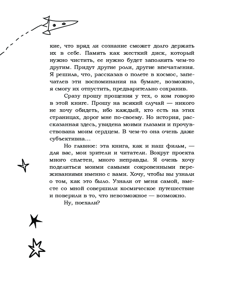 💳 Оплатить за товар можно при получении 🇰🇿 Есть бесплатная доставка по Казахстану от 1 дня 🎁 Копите бонусы с каждой покупки Серия: Мой Космос История первого в мире полета в космос для съемок художественного фильма. Юлия Пересильд — актриса, исполнившая главную роль в, пожалуй, самом амбициозном отечественном блокбастере «Вызов», рассказывает о своем уникальном опыте. Отбор в проект, медкомиссия и тренировки в Центре подготовки космонавтов, старт, полет, стыковка, подробнейший дневник 12-дневного пребывания на МКС, спуск, реабилитация... И, конечно, люди, благодаря которым этот проект состоялся. Об этом и многом другом в книге звезды, полетевшей к звездам. |