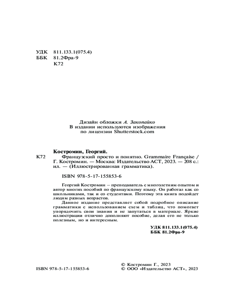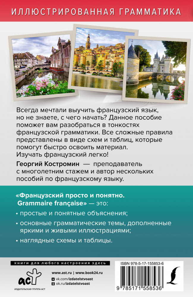 💳 Оплатить за товар можно при получении 🇰🇿 Есть бесплатная доставка по Казахстану от 1 дня 🎁 Копите бонусы с каждой покупки Серия: Иллюстрированная грамматика Георгий Костромин — преподаватель с многолетним опытом и автор многих пособий по французскому языку. Он работал как со школьниками, так и со студентами. Поэтому эта книга подойдет людям разных возрастов. |