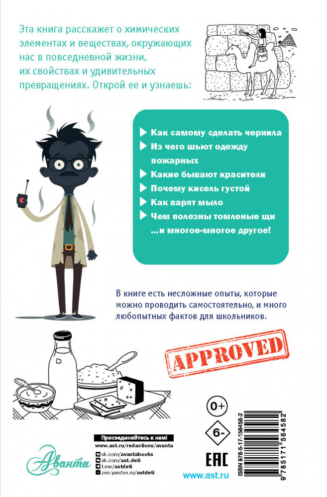 💳 Оплатить за товар можно при получении 🇰🇿 Есть бесплатная доставка по Казахстану от 1 дня 🎁 Копите бонусы с каждой покупки Серия: Простая наука для детей Как самим сделать чернила? Что такое ферменты? Почему кисель густой? Из чего делается одежда для пожарных? На эти вопросы невозможно ответить, если не знаешь химии! О химических элементах и веществах, окружающих нас в повседневной жизни, их свойствах и удивительных превращениях расскажет эта книга. |