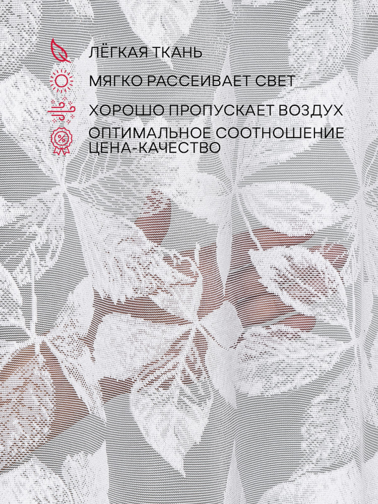 Мне очень понравилось, что можно приобрести уже готовый тюль. Красивый рисунок, идеально подошёл по размерам, качественный пошив.