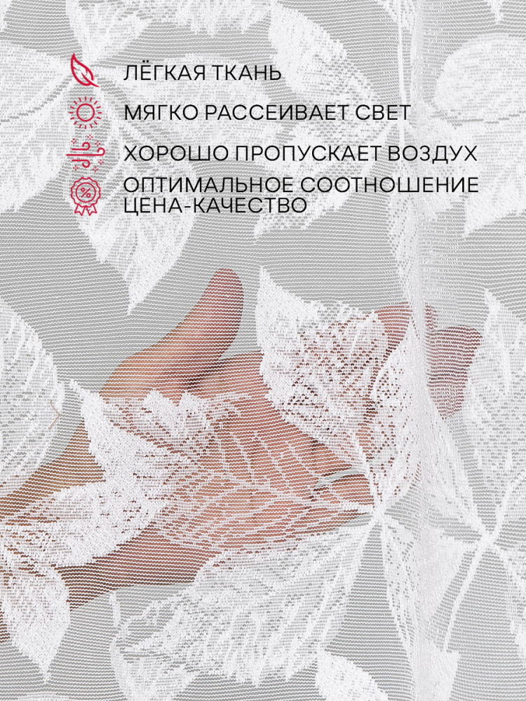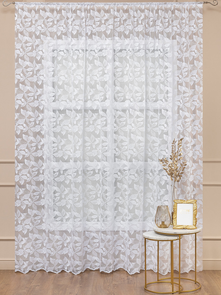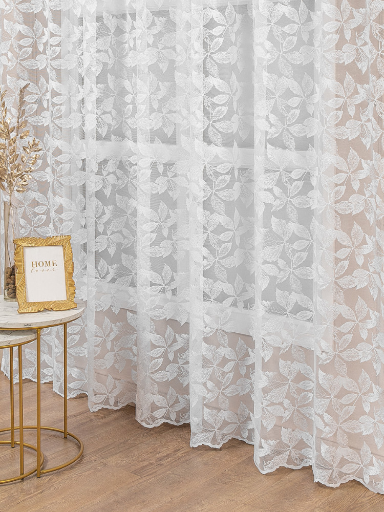 Мне очень понравилось, что можно приобрести уже готовый тюль. Красивый рисунок, идеально подошёл по размерам, качественный пошив.