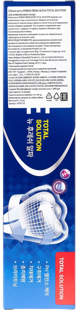 💳 Оплатить за товар можно при получении 🇰🇿 Есть бесплатная доставка по Казахстану 🎁 Копите бонусы с каждой покупки Зубная паста Fresh Alpha Total Solution подходит для комплексного ухода за полостью рта. Формула пасты быстро нейтрализует окислительные процессы в полости рта для поддержания соответствующего уровня рН 8,0, устраняет неприятный запах, удаляет налет, защищает от кариеса, бережно отбеливает зубы. |