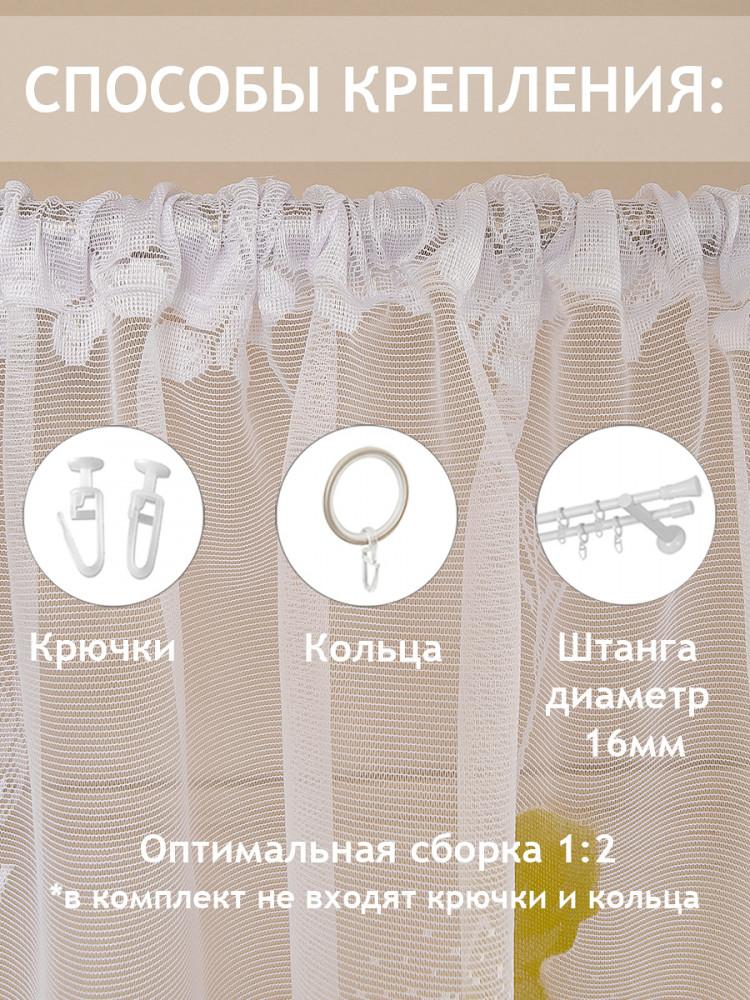 Рекомендации по уходу: машинная стирка на деликатном режиме при 30 градусах с использованием жидкого моющего средства без отбеливающих компонентов, отжим на деликатном режиме. Полотно на шторной ленте и готово к использованию.