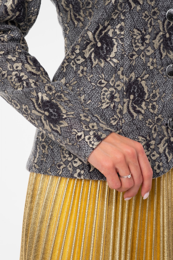 Жакет слегка большемерит,но мне это подходит.Пришёл правда весь помятый.Ещё не знаю оставлю или нет его.Необходимо кое-где ушить.