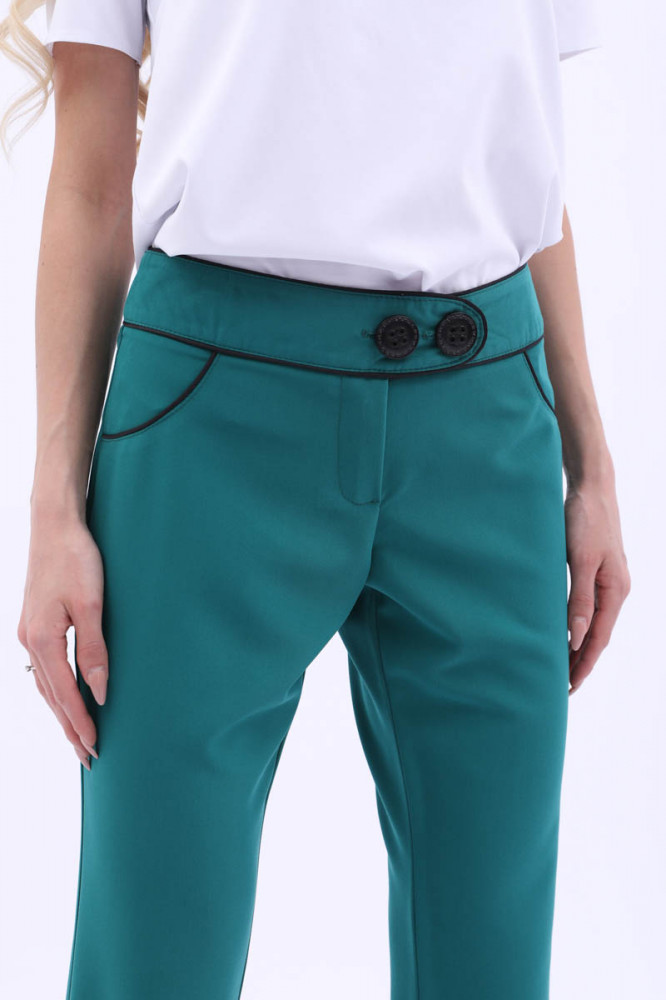 Посадка невысокая. У кого сильно выпирает живот, может пояс давить и вниз смеситься и в паху некрасиво смотреться. У меня немного выпирает, не сильно давит, но я блузку ношу на выпуск, поэтому не критично