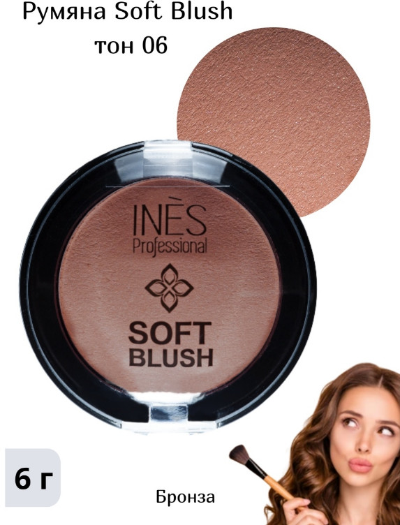 Ines Cosmetics Румяна «Soft Blush», оттенок 06 Холодный коричневый