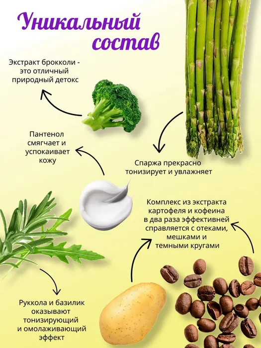 Modum Патчи для кожи вокруг глаз «Картошка»В данный момент этот товар отсутствует в продаже. Возможно, у нас найдется аналогичный или похожий товар здесь. Нет — они не в форме драников, и да — лайфхак от «Modum» — картофель действительно применяется для ухода за кожей лица. Внимание! Ни одна бьюти-блогер такого ещё не освещала: специально для кожи вокруг глаз был разработан этот прогрессивный «турбосалатик» из кофеина, пантенола, экстрактов картофеля, спаржи, брокколи, рукколы и розмарина. |