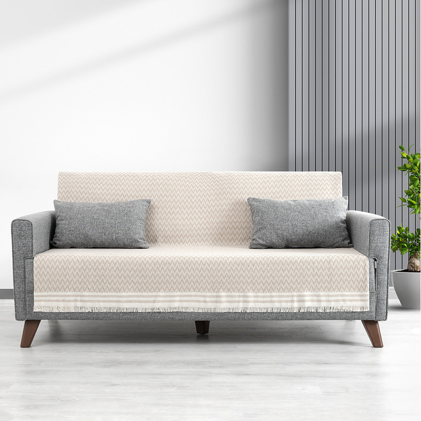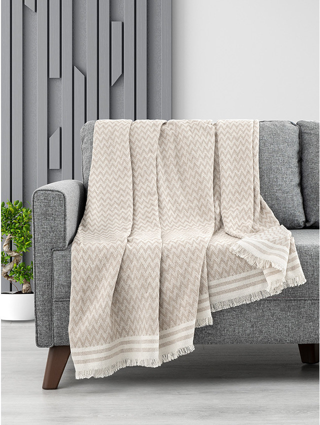 Покрывало тонкое, прочное. Принт зигзаг. Застелила диван. Смотрится хорошо.