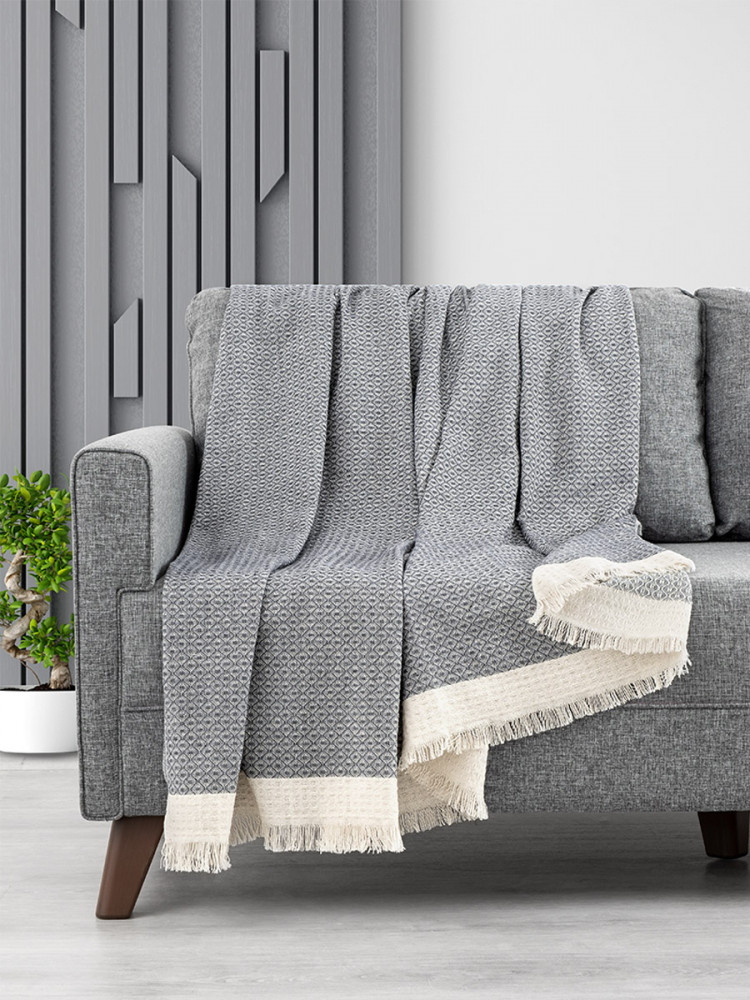 Покрывало тонкое, прочное. Принт зигзаг. Застелила диван. Смотрится хорошо.
