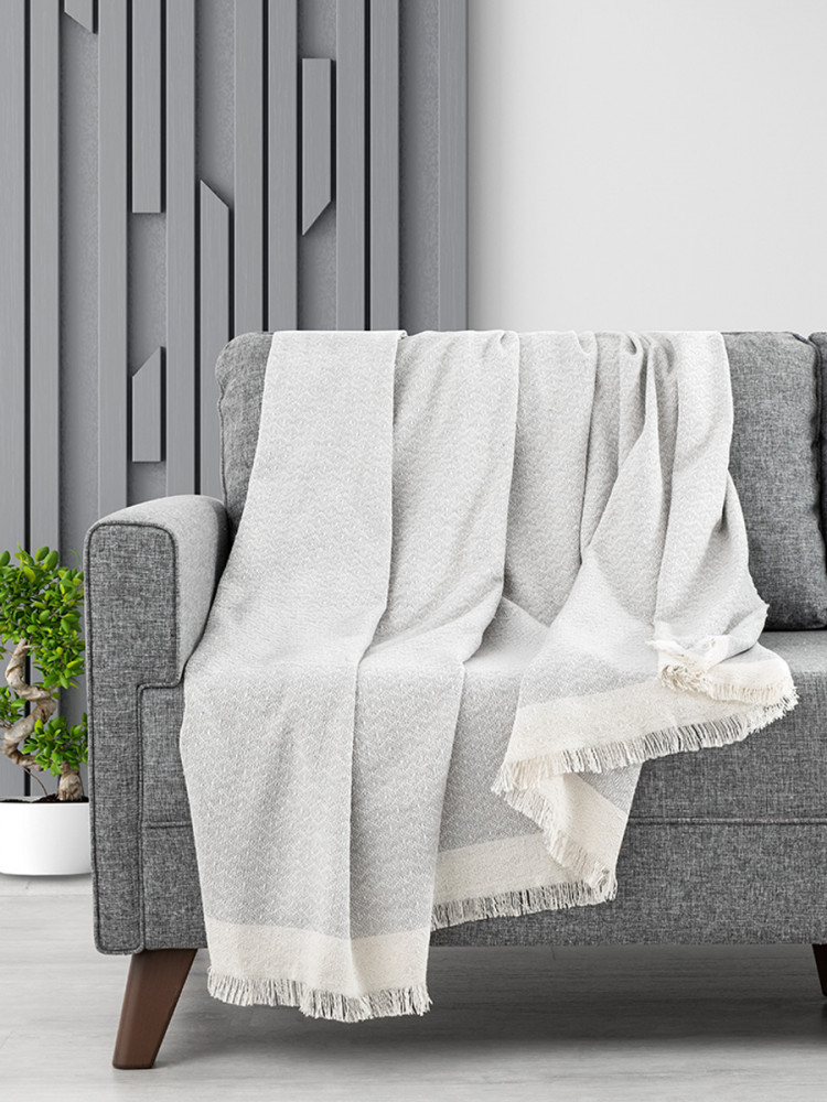 Покрывало тонкое, прочное. Принт зигзаг. Застелила диван. Смотрится хорошо.