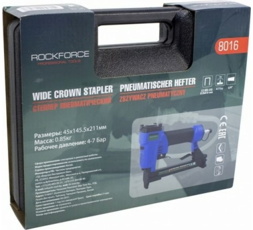 Пневматический степлер Rockforce RF-8016 — это устройство, работающее на сжатом воздухе. Применяется для соединения материалов скобами при сборке и ремонте мебели, во время отделочных и строительных работ. Небольшой вес и удобная рукоять увеличивают комфортность при работе. Кейс решает вопрос хранения и транспортировки.
