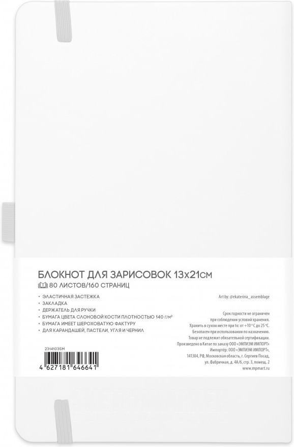 Скетчбук оснащён закладкой-ляссе, эластичной резинкой для фиксации в закрытом виде и держателем для пишущего инструмента все эти элементы выполнены в цвете обложки скетчбука.