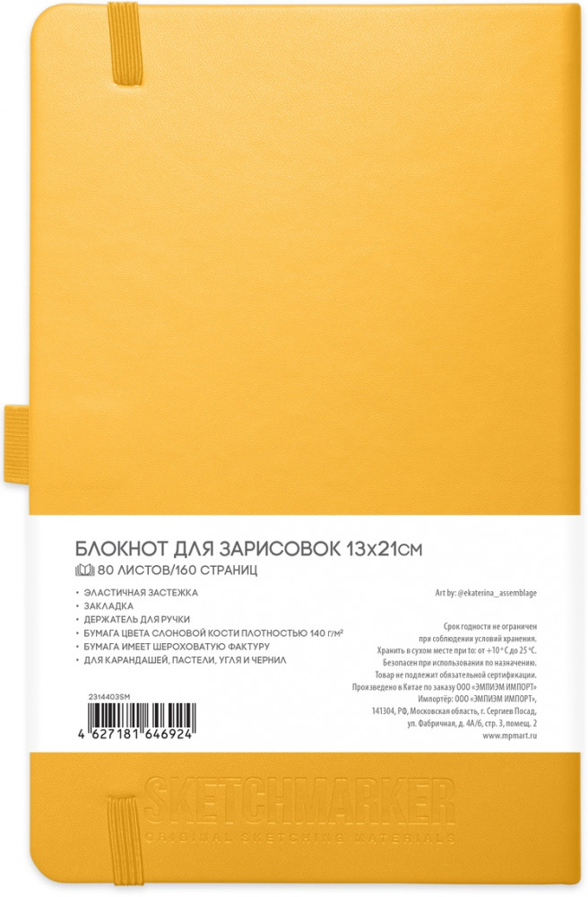 В твердой обложке скетчбука Sketchmarker 80 листов бумаги теплого белого оттенка, без линовки. Бумага гладкая, с едва ощутимой фактурой, плотностью 140 г/м, произведена из 100% целлюлозы и отлично выдерживает исправления.
