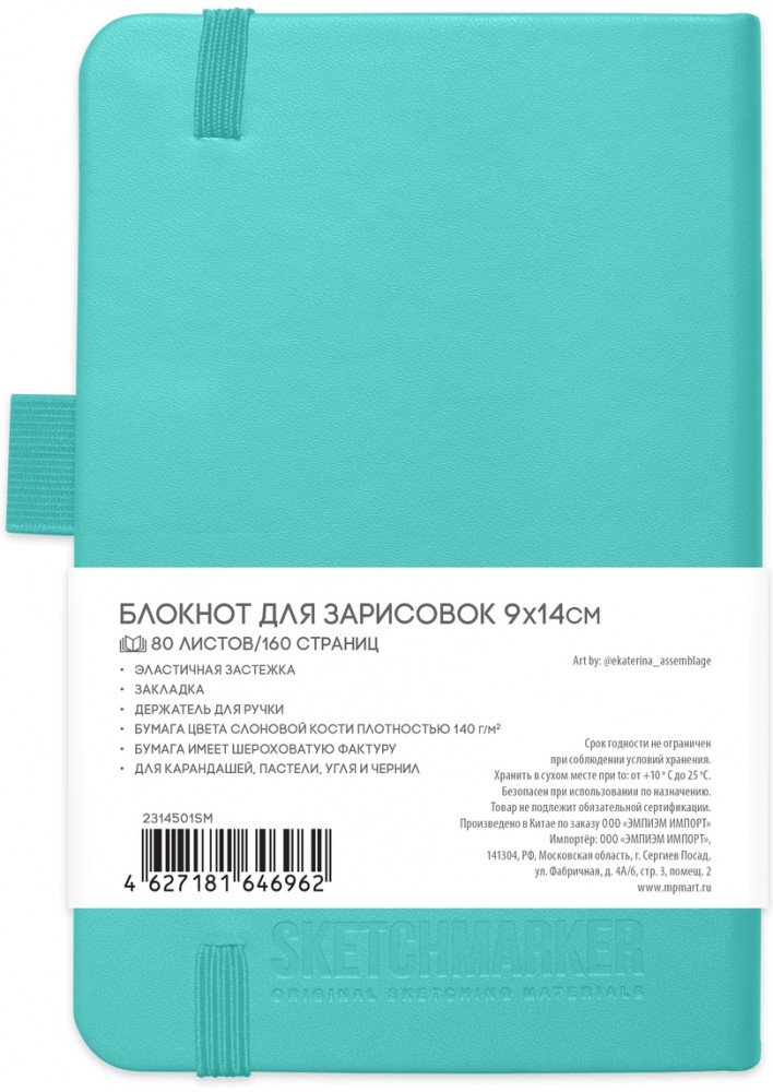 Скетчбук оснащён закладкой-ляссе, эластичной резинкой для фиксации в закрытом виде и держателем для пишущего инструмента все эти элементы выполнены в цвете обложки скетчбука.