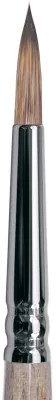 Круглая кисть из имитации мангуста. Волос из синтетической имитации мангуста имеет более жесткую структуру, чем волос из белки, но мягче щетины, благодаря чему такие кисти подойдут для работы с акварелью, акрилом, гуашью и тушью. Круглые кисти в зависимости от размера предназначены как для рисования тонких деталей, элементов декора и орнаментов, так и для рисования средних и больших элементов. Медная хромированная (серебристая) обойма. Короткая пёстрая ручка.