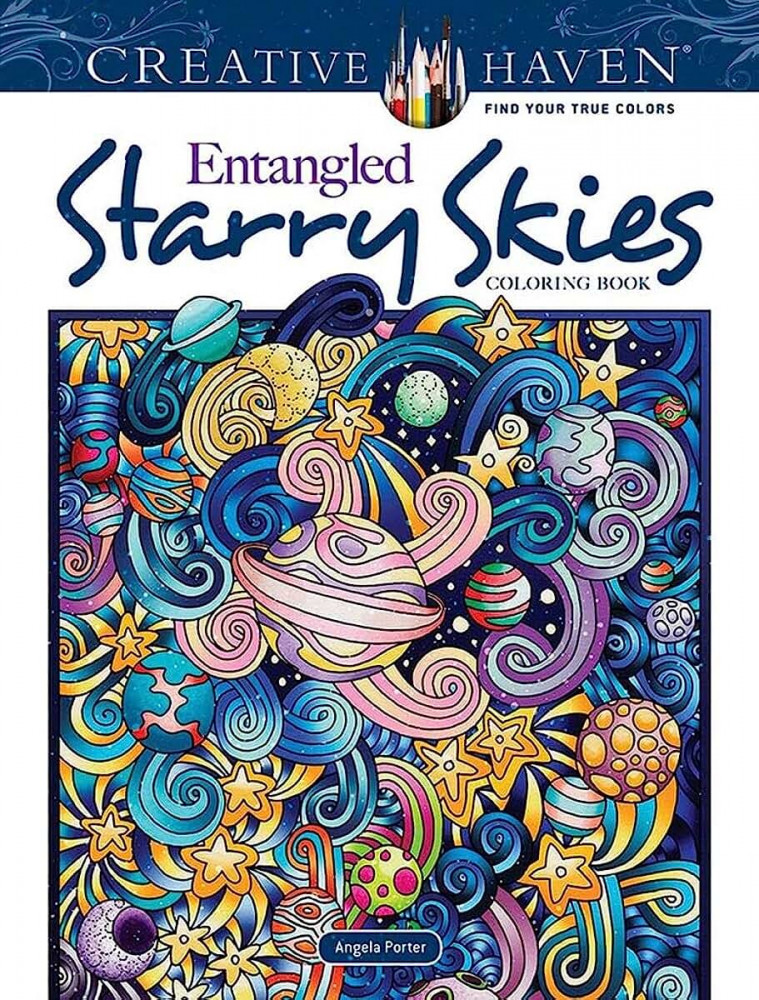 Color a mesmerizing galaxy of swirling stars and far-away planets in this unique book by best-selling artist Angela Porter. The 31 heavenly illustrations feature moons, planets, stars, and other celestial wonders of the universe in fanciful and fun designs. Enjoy using the magic of color to make these tangled patterns your own. Pages are perforated and printed on one side only for easy removal and display. Specially designed for experienced colorists, Entangled Starry Skies and other Creative Haven® adult coloring books offer an escape to a world of inspiration and artistic fulfillment. Each title is also an effective and fun-filled way to relax and reduce stress. |