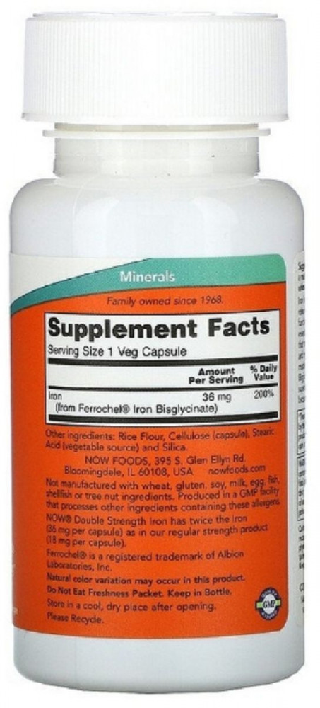 NOW Foods Таблетки «Железо двойной концентрации»В данный момент этот товар отсутствует в продаже. Возможно, у нас найдется аналогичный или похожий товар здесь. Железо — это важный минерал, играющий центральную роль в процессах выработки энергии, работы иммунной и нервной систем. Железо — это важнейший компонент гемоглобина, молекулы, переносящей кислород к клеткам тела. Железо также входит в состав миоглобина — белка, связывающего кислород в мышечной ткани. Компания NOW использует бисглицинат железа Ferrochel, так как по данным клинических исследований он лучше усваивается, а также хорошо переносится, поскольку мягко воздействует на организм и не вызывает запоров. Железо двойной концентрации от компании NOW содержит в 2 раза больше железа (36 мг в капсуле), чем продукт обычного действия (18 мг в капсуле). |