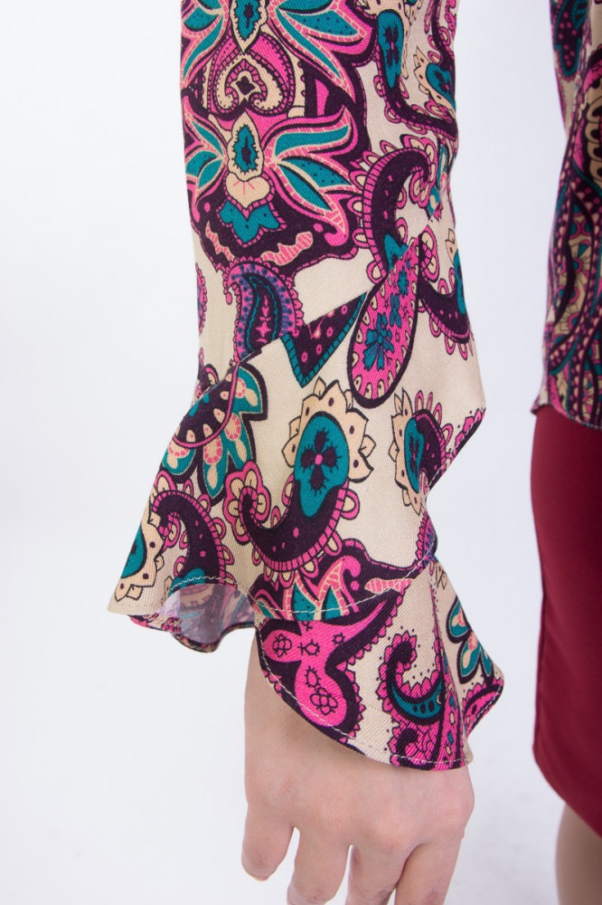 Яркая, красивая блузка. После стирки не полиняла и форму не потеряла.