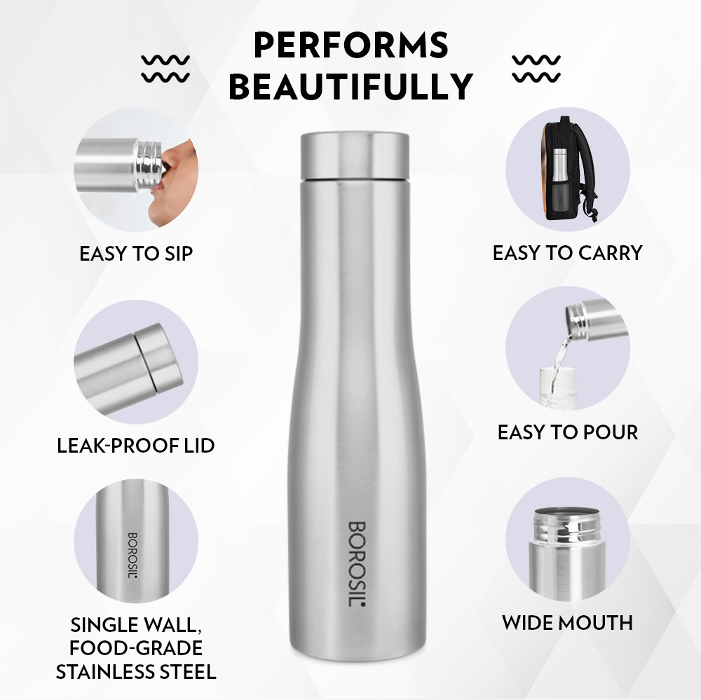 Хорошая бутылка, нержавеющая сталь пищевая, видно сразу. Благодарю BOROSIL
