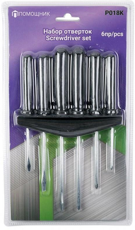 Помощник Набор отвертокВ данный момент этот товар отсутствует в продаже. Возможно, у нас найдется аналогичный или похожий товар здесь. Специально сконструированная эргономичная двухкомпонентная рукоятка обеспечивает надежный захват и уверенную работу. В зависимости от типа работ предусмотрены две зоны: узкая для точных и широкая для мощных вращений. |