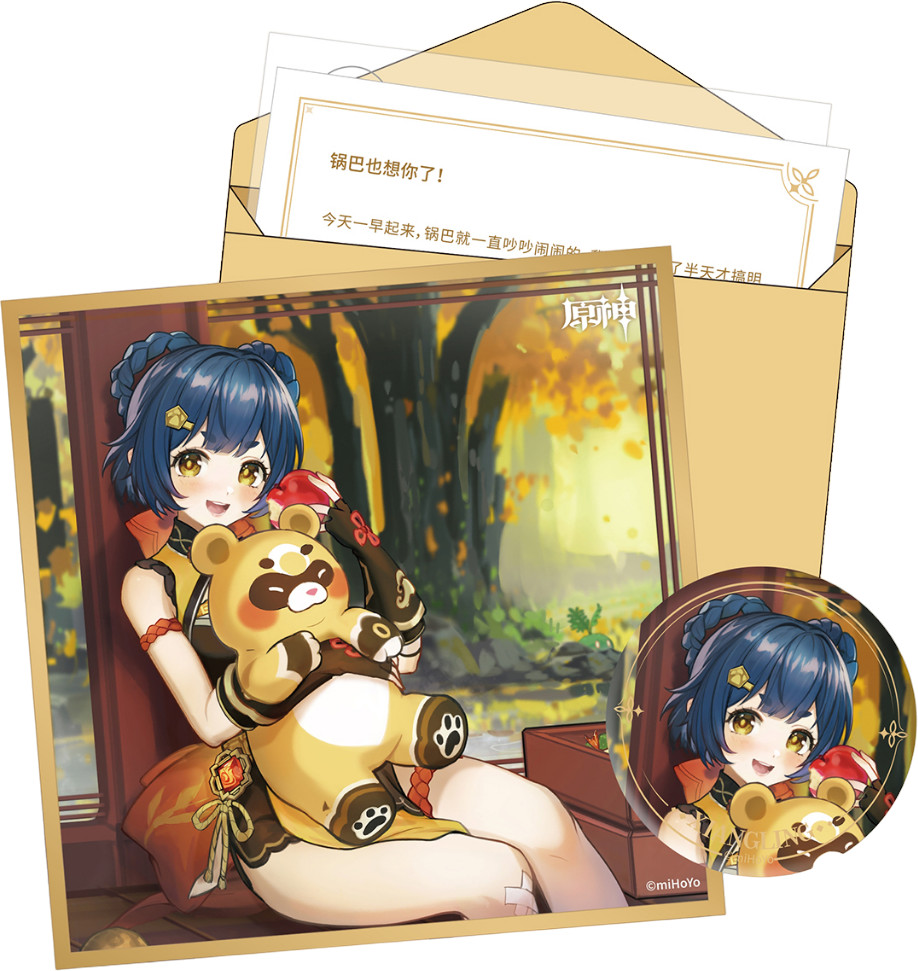 Набор значок, сикиси, конверт, письмо, наклейка Day of Destiny Series Xiangling по мотивам компьютерной игры «Genshin Impact».
