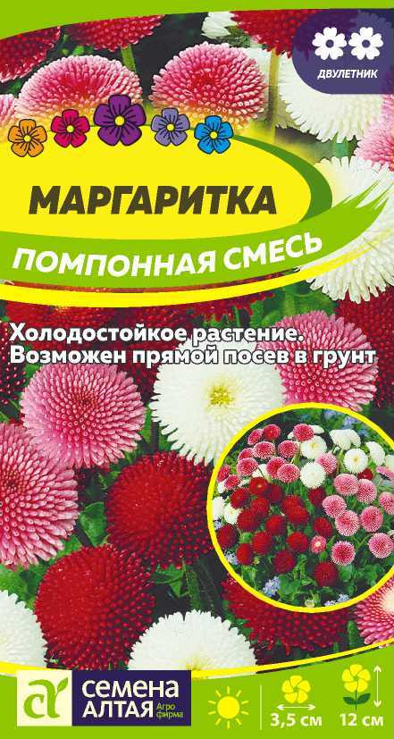 Семена Алтая Маргаритка «Помпонная смесь»В данный момент этот товар отсутствует в продаже. Возможно, у нас найдется аналогичный или похожий товар здесь. Очаровательное миниатюрное растение высотой до 12 см, выращиваемое как двулетник. Образует аккуратную розетку листьев и многочисленные раскидистые безлистные цветоносы с небольшими (до 3,5 см диаметром) махровыми корзинками белой, розовой и красной окраски, образованными трубчатыми цветками. Маргаритка сделает ваш сад уютным и нарядным. Используется в групповых посадках на рабатках, островками на газонах, в декорировании балконных ящиков. Светолюбивое, холодостойкое растение, выносит полутень. Предпочитает солнечное местоположение на умеренно плодородных лёгких почвах. Для получения растений, цветущих в год посева, семена на рассаду сеют не позднее начала марта, в открытый грунт рассаду высаживают в начале июня. Обычно же посевы проводят в конце июня. Глубина заделки семян — 1-2 мм. Сеянцы пикируют в фазе 1-2-х пар настоящих листьев по схеме 10 × 10 см. В августе их пересаживают на постоянное место с шагом 20 см. Цветение при посеве семян в грунт — на второй год в апреле-июле, при хорошем уходе цветение продолжается до осени с перерывом в жаркий период сезона. |