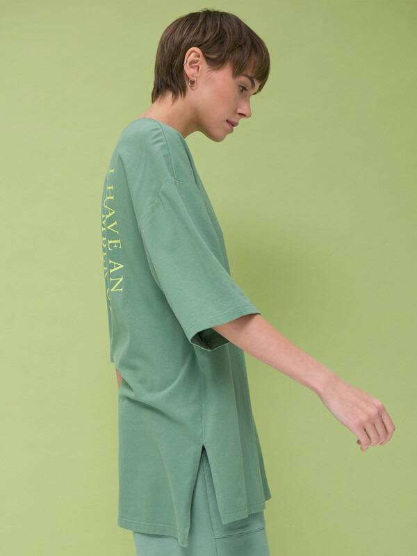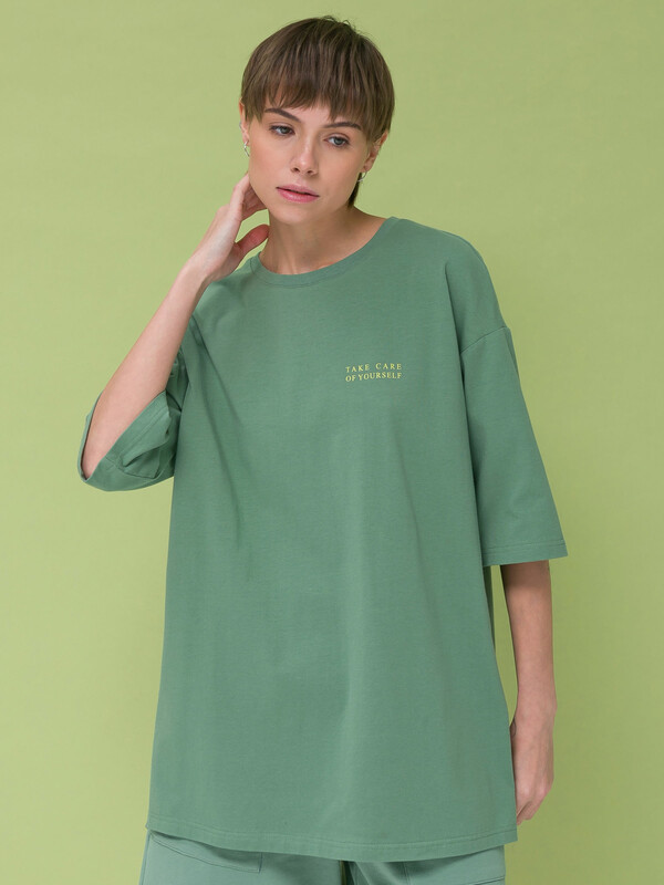 Модная футболка женская оверсайз длинная от бренда Pelican (Пеликан) трендовая модель весна лето 2023. Стильная футболка прямого кроя, с коротким рукавом и округлым вырезом. Яркая однотонная футболка с принтом и надписью на спине, модных оттенков и эксклюзивный дизайн впишутся в любой женский гардероб. Красивая и крутая базовая вещь, с помощью которой легко создавать стильные образы для девушки. Современная мода стерла границы вечерней и спортивной одежды. Сегодня футболка женская свободного кроя сочетается с высокой шпилькой, кроссовками, подходит для работы в офисе, вечеринок и повседневных прогулок каждый день весной и летом.