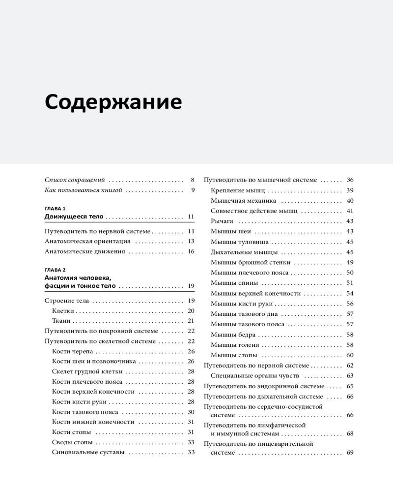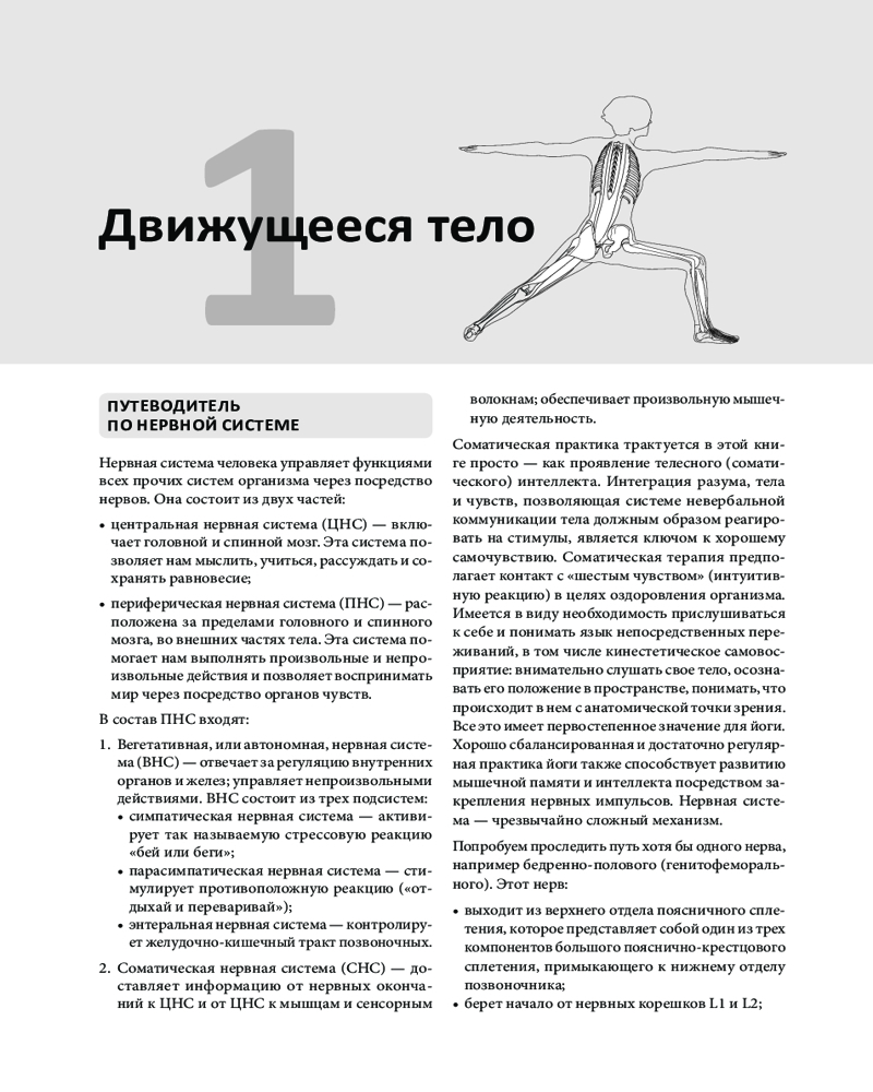 Главы 1 и 2 знакомят читателя с анатомией и физиологией тела. Инструктор йоги Джо Энн Стаугорд-Джонс подробно описывает анатомическую систему координат и движений, нервную, скелетную, мышечную, дыхательную и другие системы, объясняя, как каждая из них связана с йогой и движениями.
