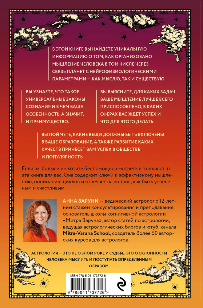 💳 Оплатить за товар можно при получении 🇰🇿 Есть бесплатная доставка по Казахстану от 1 дня 🎁 Копите бонусы с каждой покупки Серия: Астрология от А до Я В этой книге вы найдете уникальную информацию о том, как организовано мышление человека, в том числе через связь планет с нейрофизиологическими параметрами — как мыслю, так и существую. Вы узнаете, что такое универсальные законы сознания и в чем ваша особенность, а значит, и преимущество. Вы выясните, для каких задач ваше мышление лучше всего приспособлено, в каких сферах вас ждет успех и что для этого делать. |
