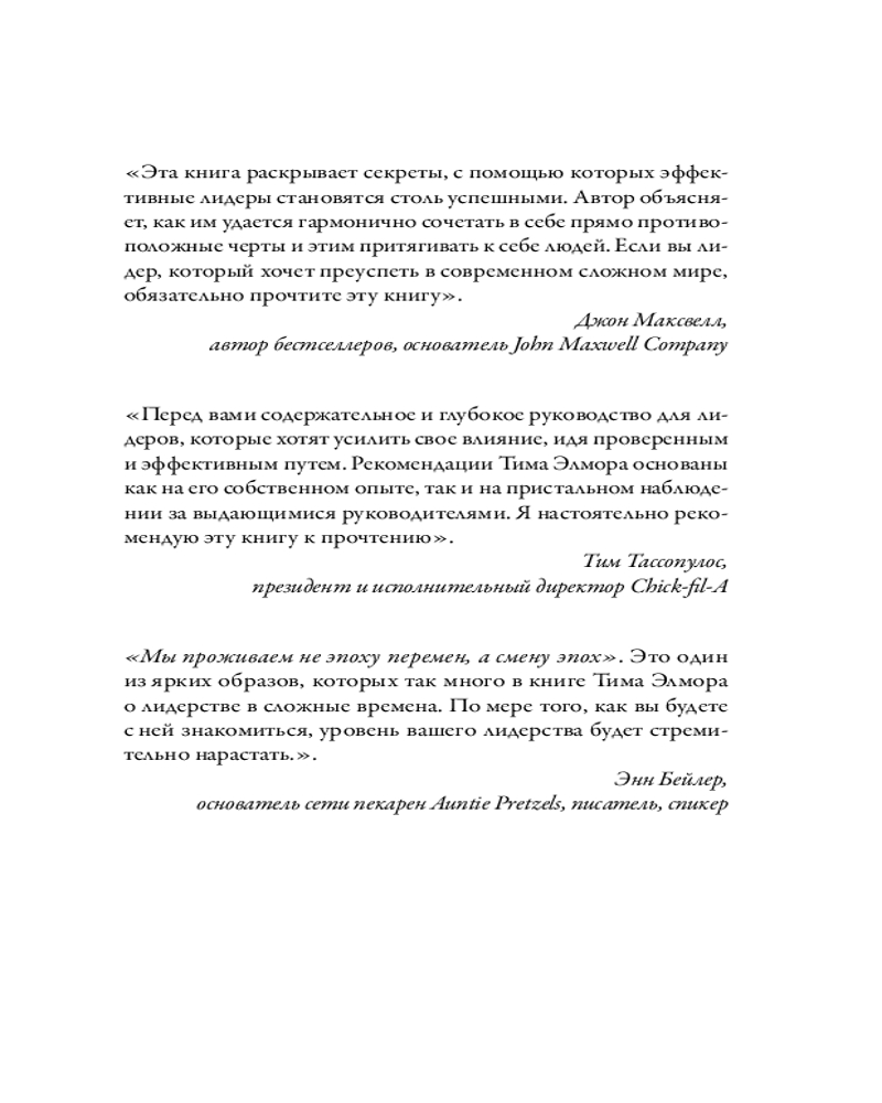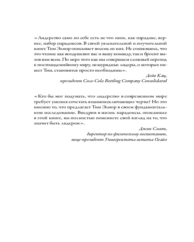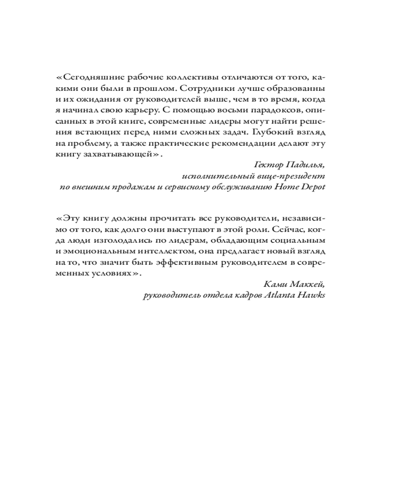 За 20 лет он подготовил сотни тысяч специалистов, ставших руководителями компаний, корпораций, фондов. Элмор вывел формулу эффективности для современных лидеров: всего восемь парадоксальных качеств, развив которые, вы станете более уверенным и компетентным руководителем.