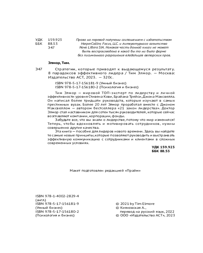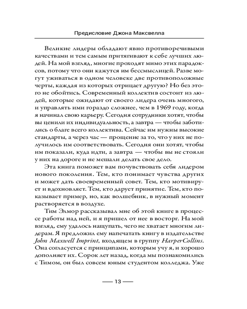 Серия: Психология и бизнес Забудьте все, что вы знали о законах лидерства, потому что мир изменился! Теперь, чтобы вдохновлять и мотивировать сотрудников, нужны совершенно другие качества и стратегии. Тим Элмор — мировой Топ-эксперт по лидерству и личной эффективности, уровня Стивена Кови, Брайана Трейси, Джона Максвелла. Он написал более 30 руководств, которые изучают во всем мире.