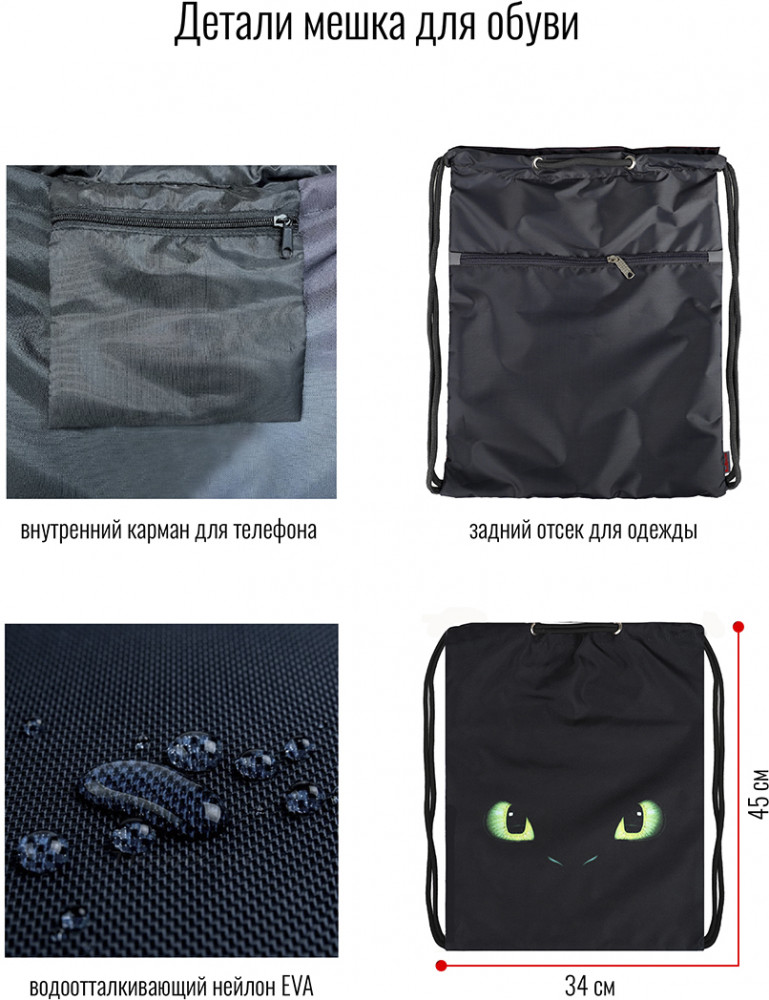 Основное отделение затягивается толстыми шнуром, которые дополнительно выполняют функцию лямок, внешний карман застегивается на молнию. Мешок имеет внутренний карман на молнии для мелочей и телефона. Мешок-рюкзак удобно носить на плече или как рюкзак на спине, а также за ручку. Для безопасного использования в любое время суток, мешок дополнен светоотражающими элементами, которые обеспечивает безопасность в условиях недостаточного освещения, сделают его видимым на дорогах в свете автомобильных фар. Мешки для обуви бренда BagRio с модными принтами составят комплект к школьным ранцам и пеналам.