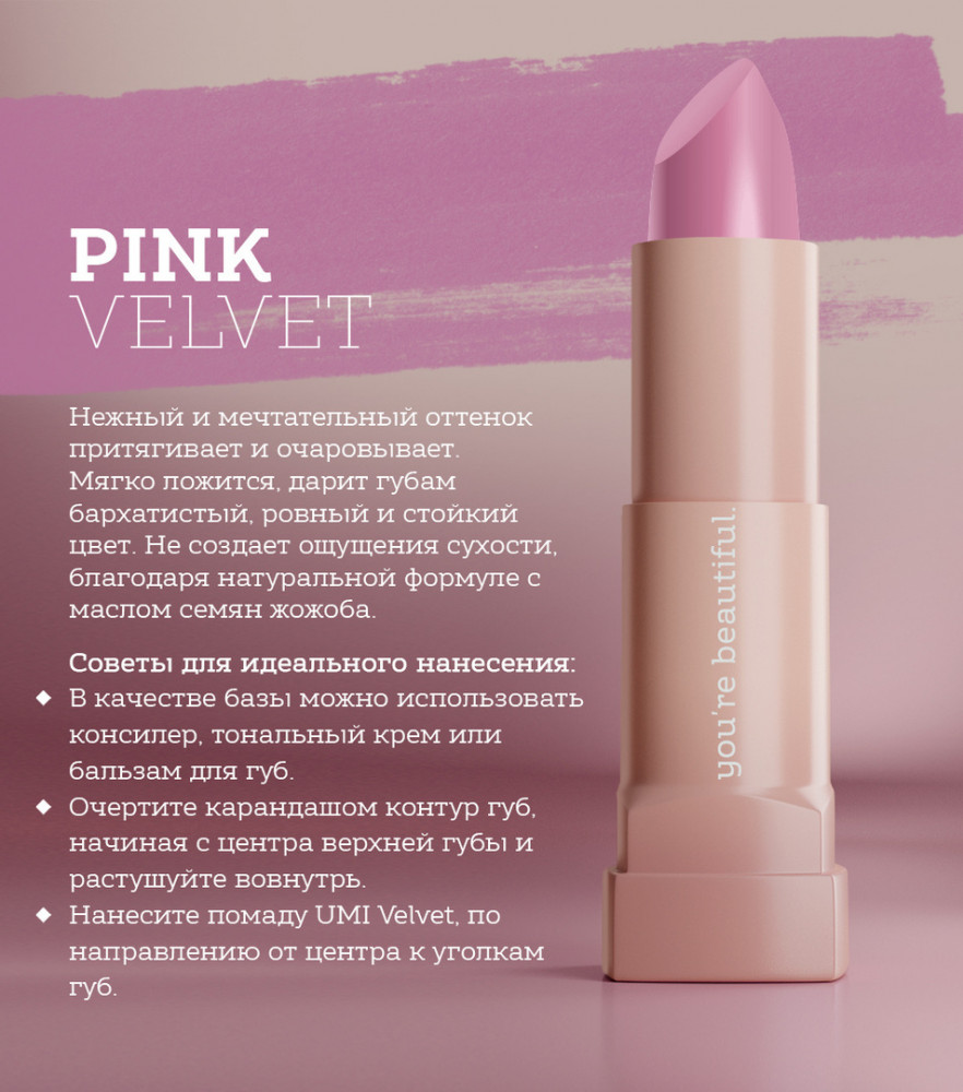 UMI cosmetic for you Помада для губ «Velvet», тон Pink