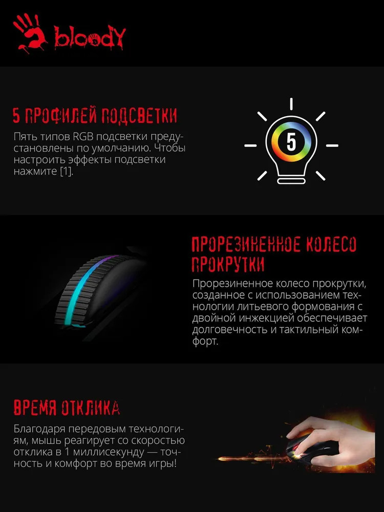 Мыши Bloody созданы для того, чтобы дать вам преимущество в интенсивной игре. С их помощью вы можете реагировать быстрее и всегда быть на шаг впереди противников.