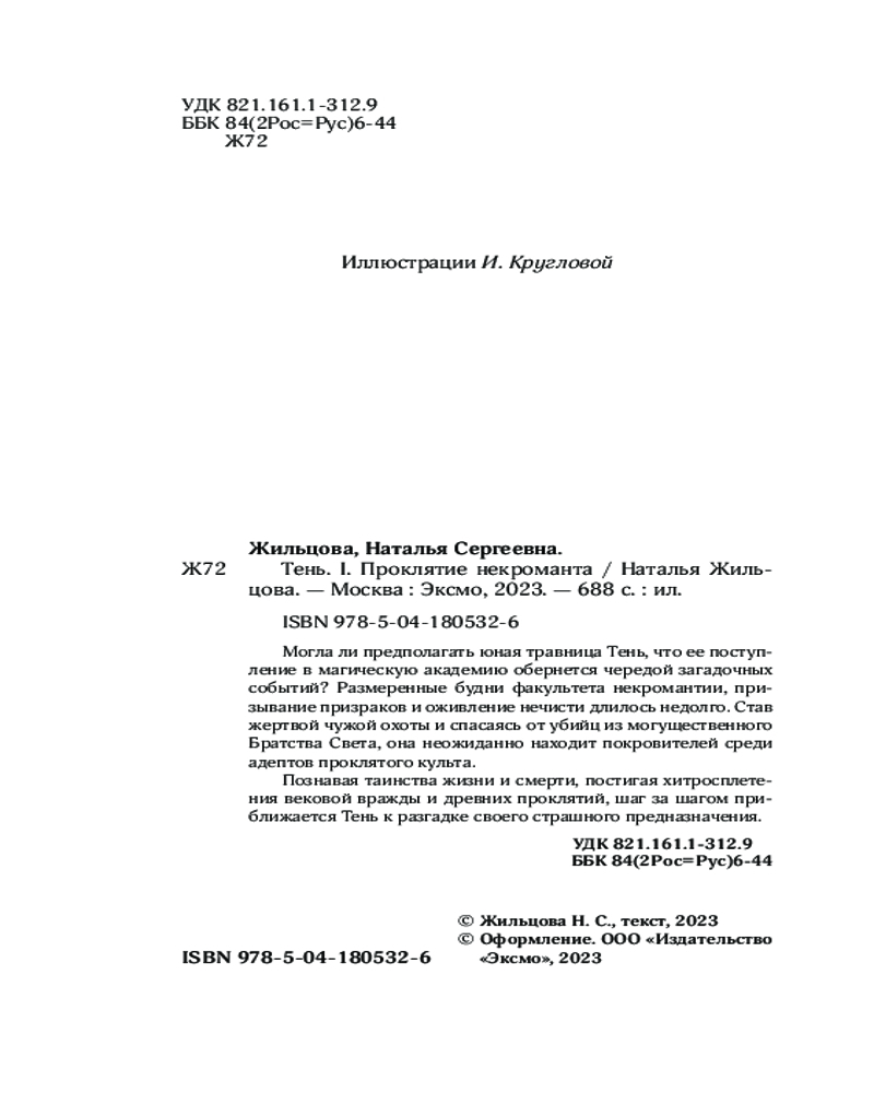 Тень. Том 1В данный момент этот товар отсутствует в продаже. Возможно, у нас найдется аналогичный или похожий товар здесь. Серия: Миры Натальи Жильцовой. Коллекция Могла ли предполагать юная травница Тень, что ее поступление в магическую академию обернется чередой загадочных событий? Размеренные будни факультета некромантии, призывание призраков и оживление нечисти длилось недолго. Став жертвой чужой охоты и спасаясь от убийц из могущественного Братства Света, она неожиданно находит покровителей среди адептов проклятого культа. Познавая таинства жизни и смерти, постигая хитросплетения вековой вражды и древних проклятий, шаг за шагом приближается Тень к разгадке своего страшного предназначения. |