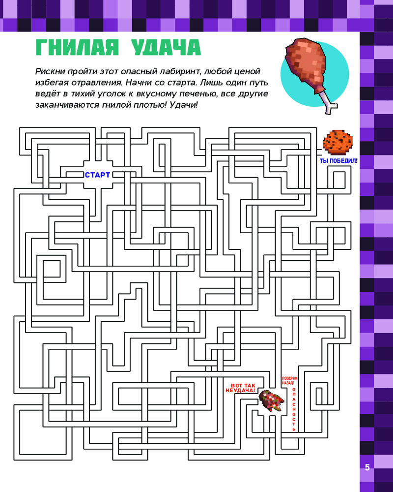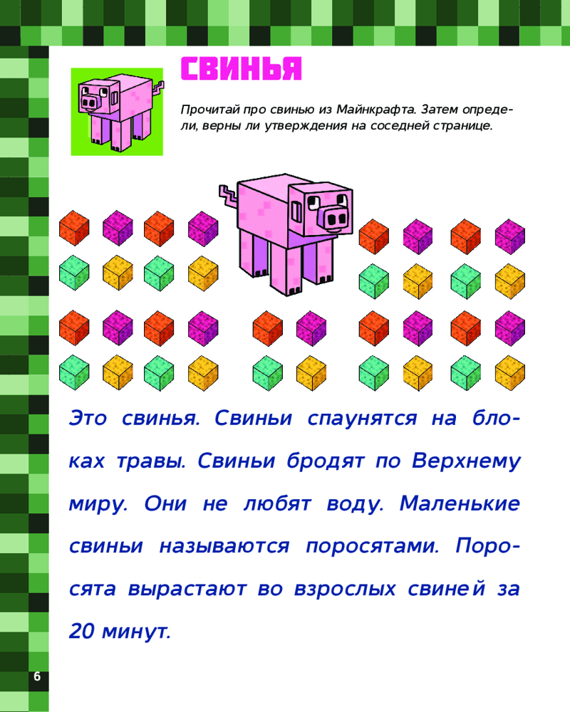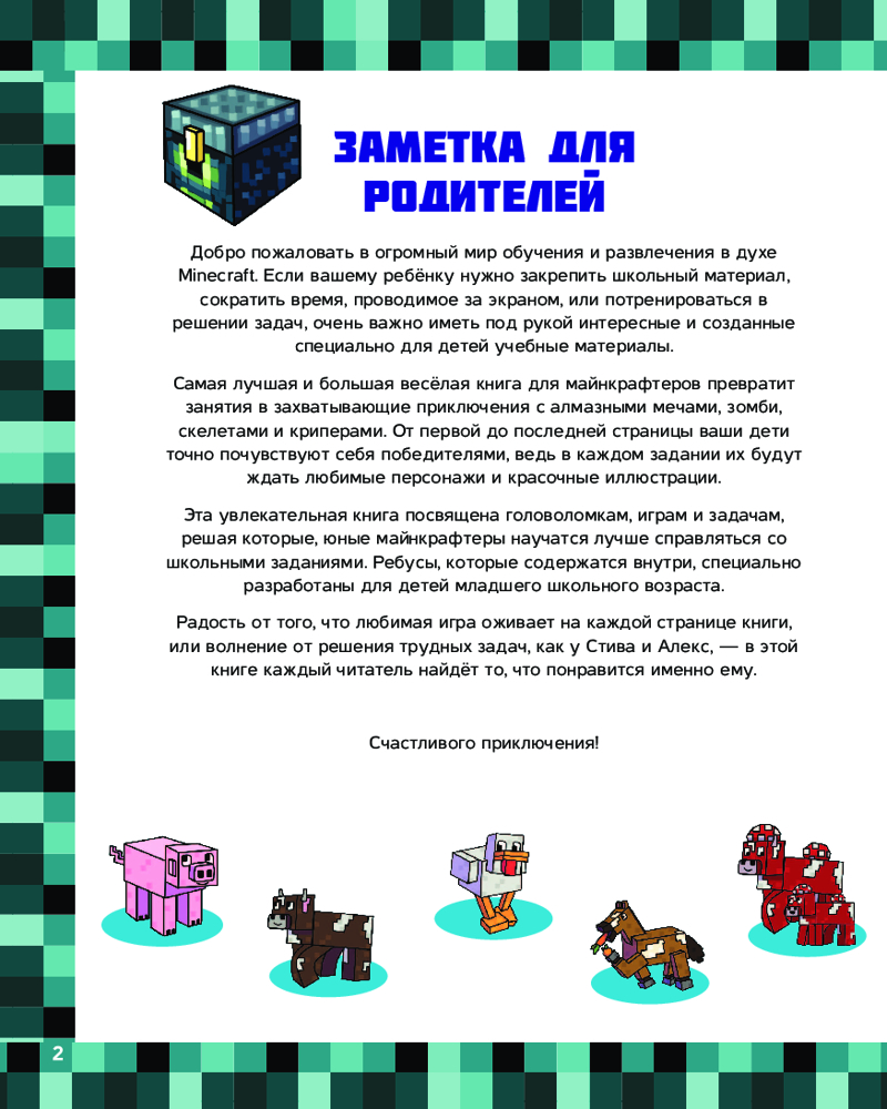Minecraft. Большая книга головоломок для мальчиков и девочекВ данный момент этот товар отсутствует в продаже. Возможно, у нас найдется аналогичный или похожий товар здесь. Серия: Вселенная Minecraft В этой книге есть всё для того, чтобы развлечь скучающих майнкрафтеров! Ведь их ждут захватывающие задачки на логику с зомби и скелетами, а также опасные лабиринты с гастами, головоломки с драконом Края и многое другое. То есть всё, что нужно для мальчиков и девочек, увлечённых миром Minecraft! Книга создана специально для детей младшего школьного возраста — крупные буквы, яркие иллюстрации и увлекательные задачки помогут одновременно подготовиться к школе и весело провести время. |