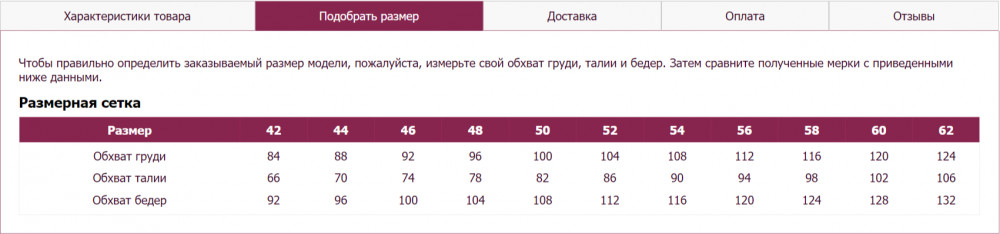Размер производителя