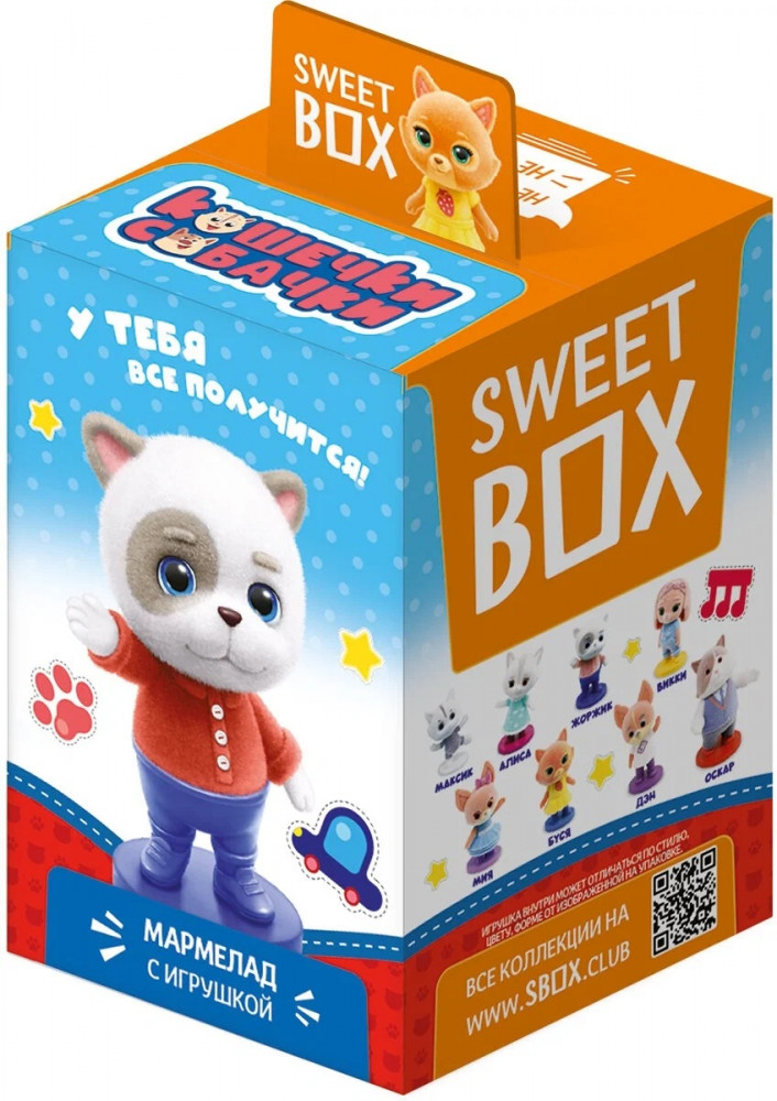 Sweet box Мармелад с игрушкой «Кошечки-собачки»вкус мармелада игрушка внутри игрушки супер В данный момент этот товар отсутствует в продаже. Возможно, у нас найдется аналогичный или похожий товар здесь. «Sweet Box» — целый мир в одной коробочке! Большая коллекционная игрушка и вкусное фруктовое вложение — мармелад с натуральным соком. «Sweet Box» — не просто лидер, а законодатель трендов в категории «Кондитерские изделия с игрушкой». Игрушки в коробочках не только большие по размеру, но также отличаются высоким качеством и прекрасной детализацией. Многие коллекционные игрушки свитбокс имеют флоковое покрытие. В коллекциях представлено от 6 до 10 персонажей. Из одного блока можно собрать полную коллекцию. |