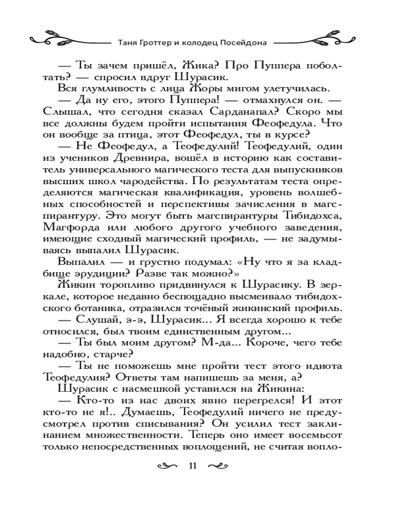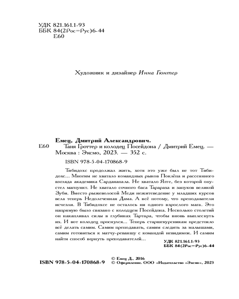 💳 Оплатить за товар можно при получении 🇰🇿 Есть бесплатная доставка по Казахстану от 1 дня 🎁 Копите бонусы с каждой покупки Серия: Детск. Таня Гроттер: юбилейное издание Тибидохс продолжал жить, хотя это уже был не тот Тибидохс. Многим не хватало командных рыков Поклепа и рассеянного взгляда академика Сарданапала. Не хватало Ягге, без которой опустел магпункт. Не хватало сочного баса Тарараха и запуков великой Зуби. Вместо рыжеволосой Меди нежитеведение у младших курсов вела теперь Недолеченная Дама... А все потому, что преподаватели исчезли! В высшей школе волшебства не осталось ни одного взрослого мага. Это напрямую связано с колодцем Посейдона. |
