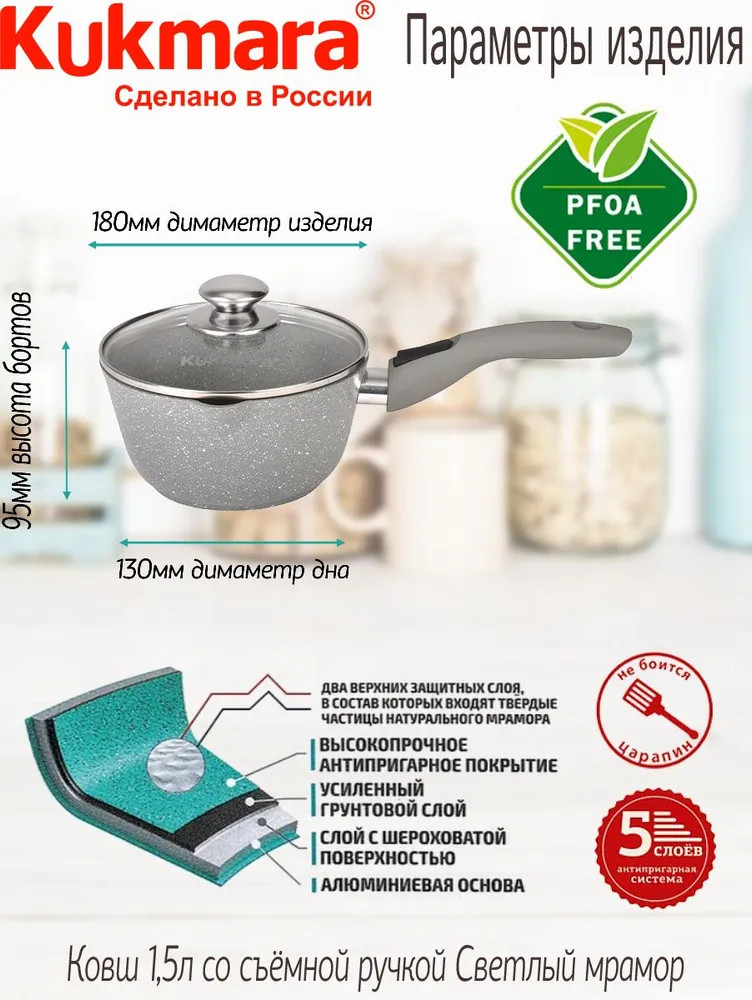 Ковш из литого алюминия идеален для приготовления каш и соусов, а также для разогрева небольших порций ранее приготовленной еды. Кроме того, ковш станет отличным помощником для приготовления и первых, и вторых блюд для небольшой семьи. Функциональность посуды увеличивает стеклянная крышка из термостойкого стекла, благодаря которой можно наблюдать за приготовлением пищи и не снимать крышку каждый раз, теряя при этом изрядное количество тепла. Стеклянная крышка комплектуется ручкой из нержавеющей стали, благодаря которой допускается использование ее в духовом шкафу. Удобное хранение обеспечивает съемная ручка.