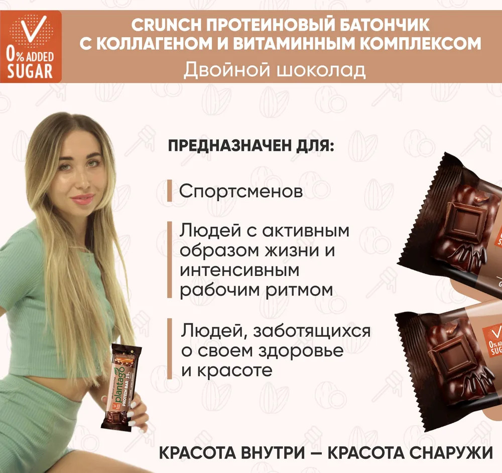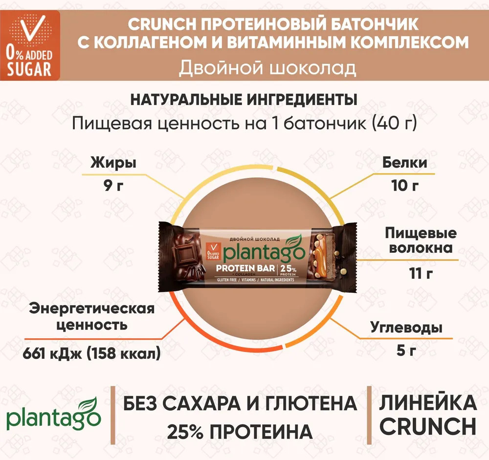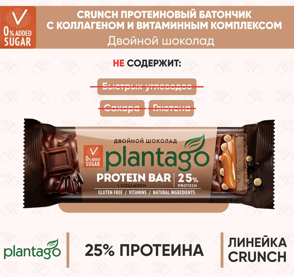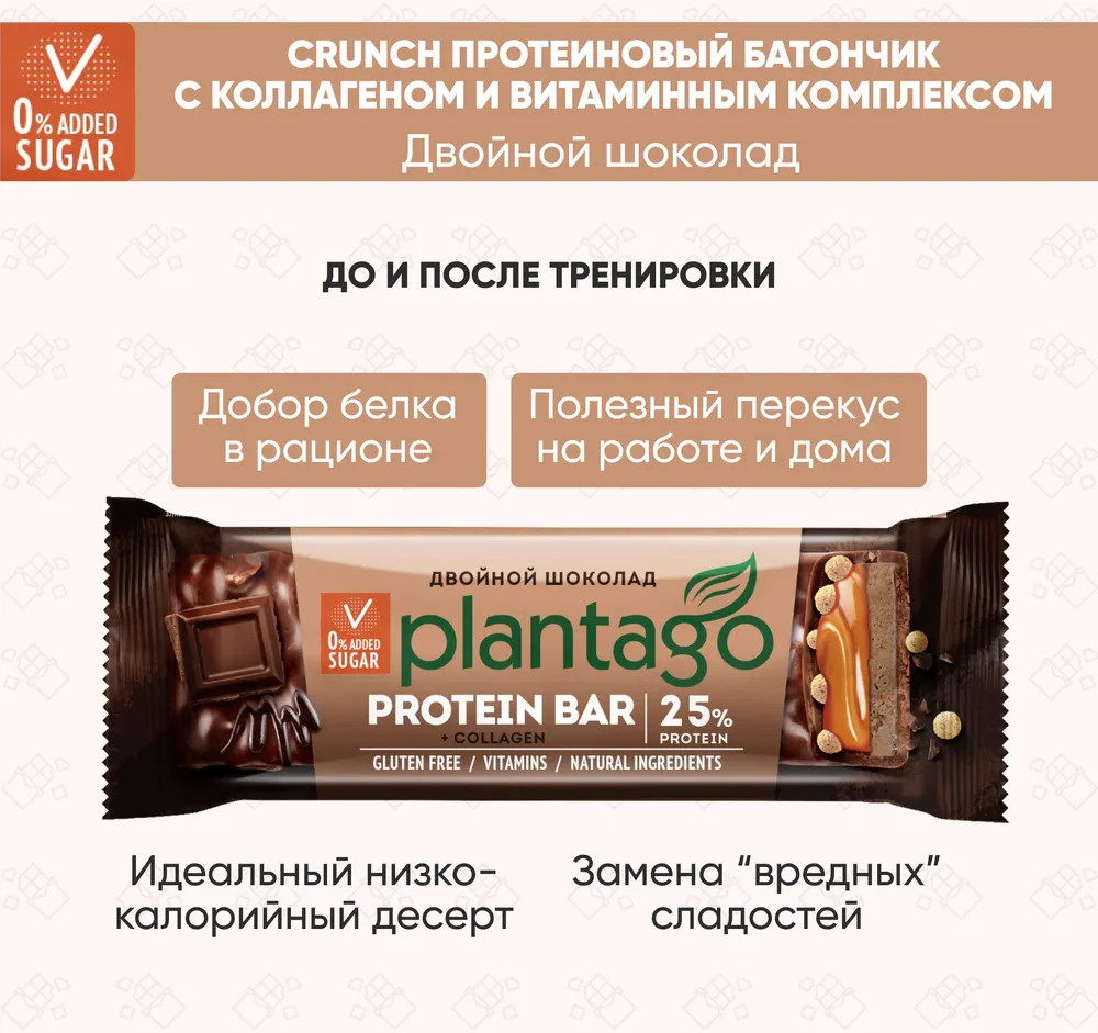 Plantago Батончик протеиновый «Двойной шоколад»