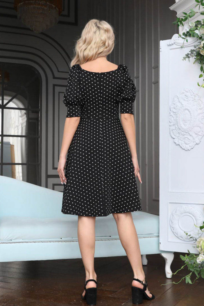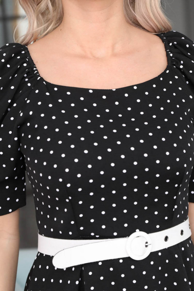 Хорошая тянущаяся ткань, смотрится дорого. "Горошек" вообще моя любовь. Рукавчики "фонариком" - просто восторг!