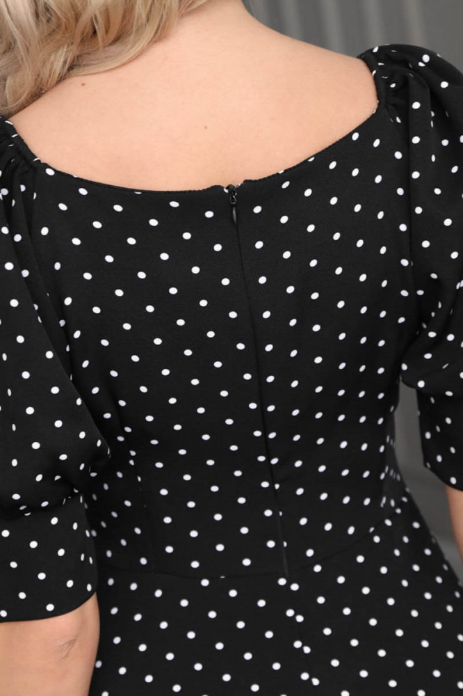 Хорошая тянущаяся ткань, смотрится дорого. "Горошек" вообще моя любовь. Рукавчики "фонариком" - просто восторг!