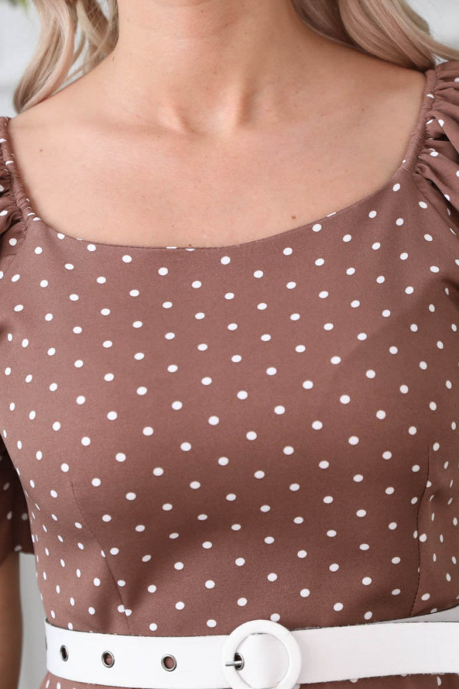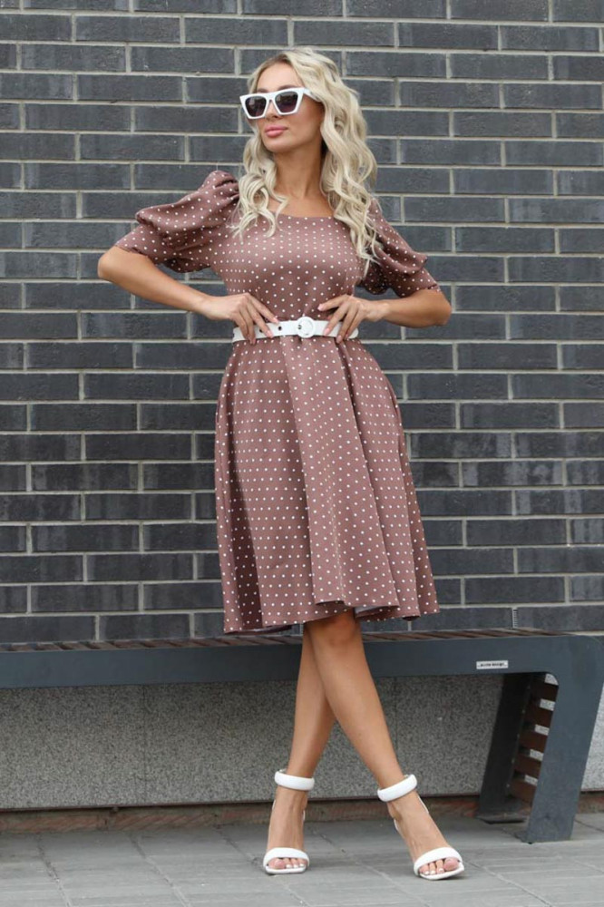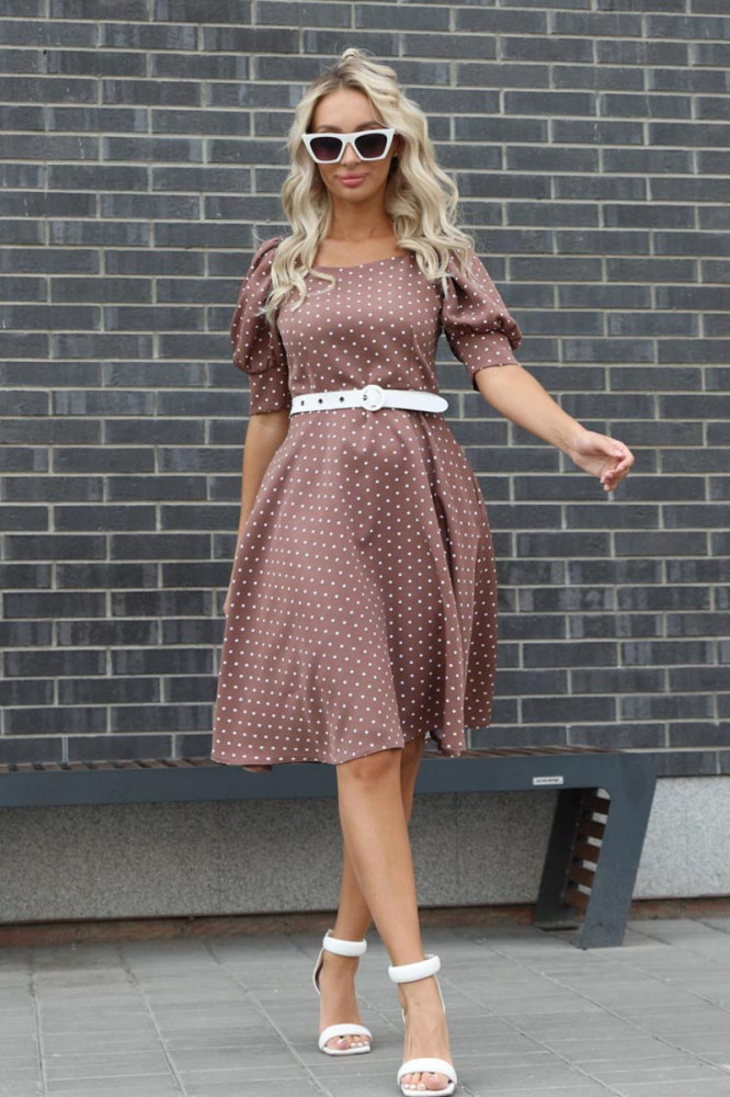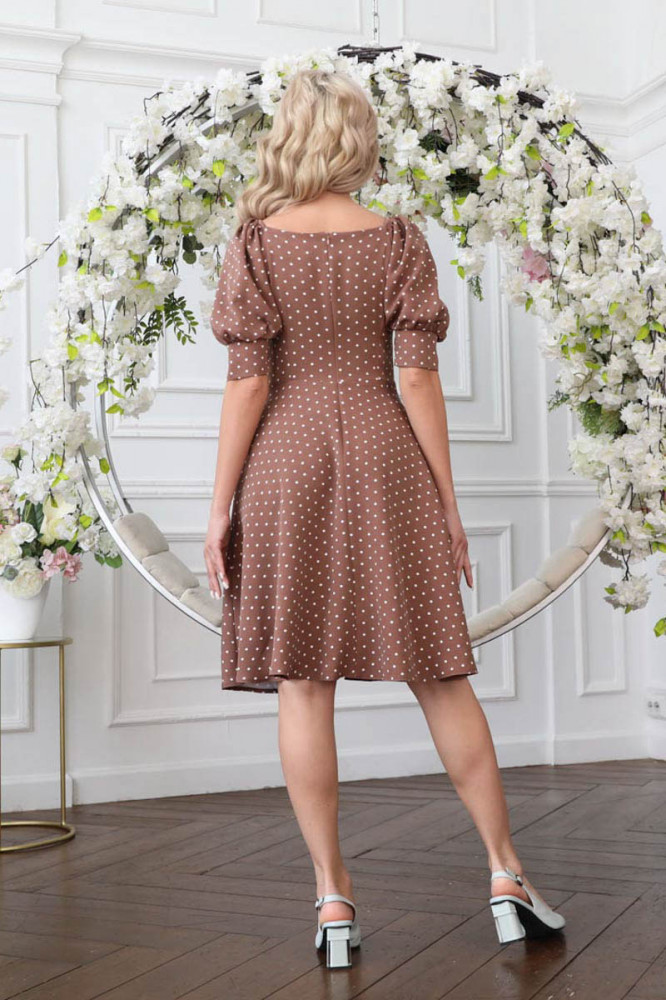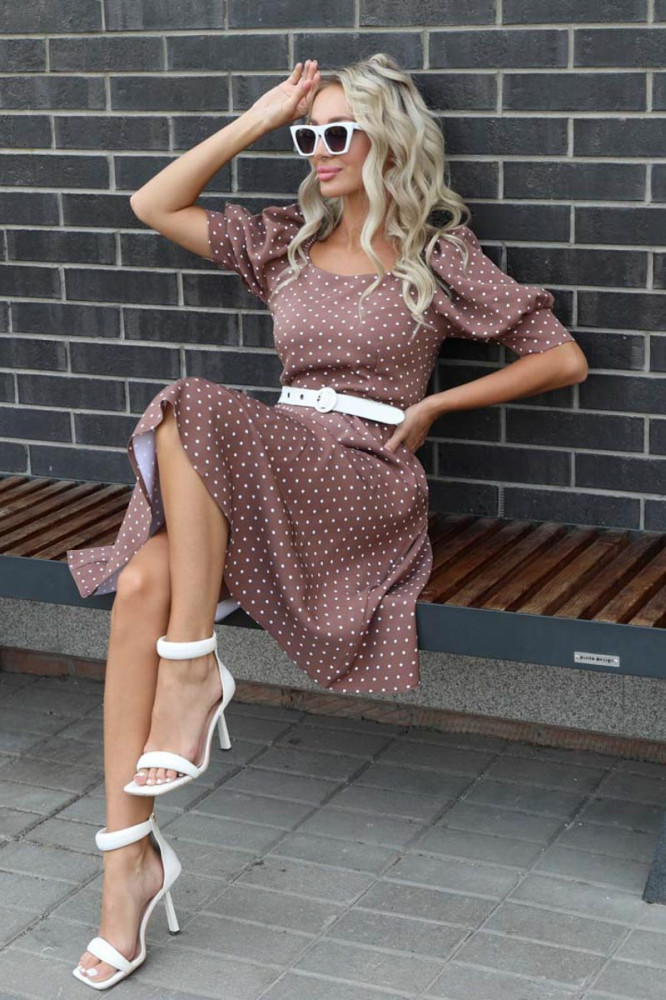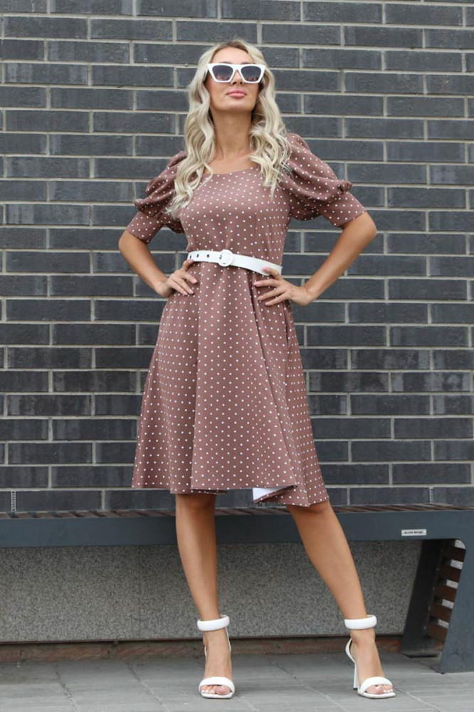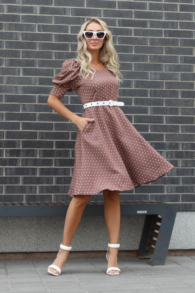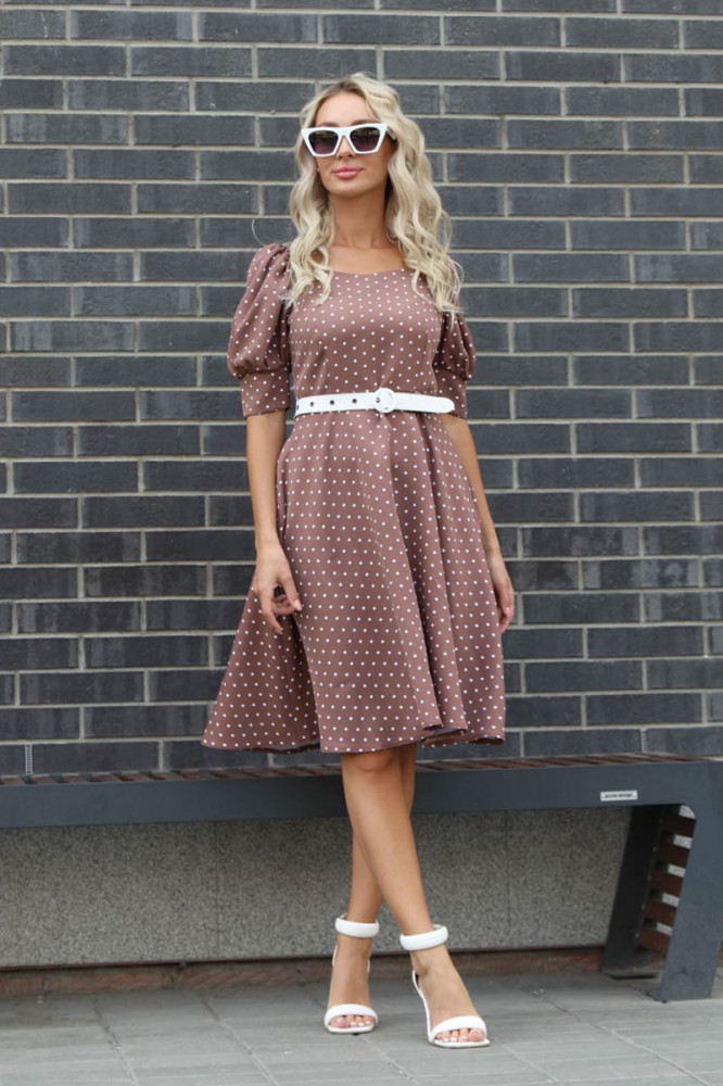 Хорошая тянущаяся ткань, смотрится дорого. "Горошек" вообще моя любовь. Рукавчики "фонариком" - просто восторг!