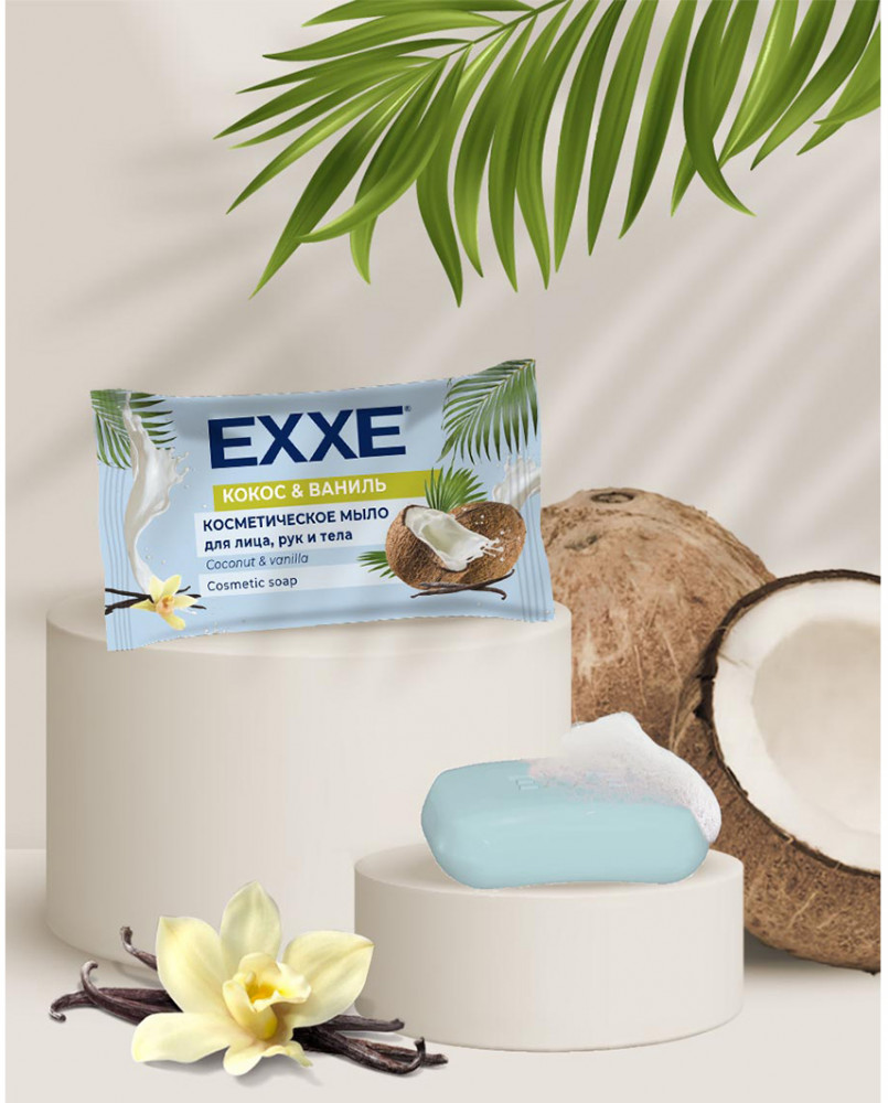 EXXE Мыло косметическое «Кокос и ваниль»-20% +10 не раскисает не покрывается трещинами приятный аромат не сушит кожу хорошая пена маленький размер