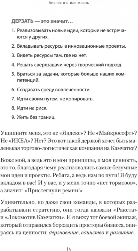 💳 Оплатить за товар можно при получении 🇰🇿 Есть бесплатная доставка по Казахстану от 1 дня 🎁 Копите бонусы с каждой покупки Серия: Бизнес-психология В мире становится все больше и больше компаний, для которых бизнес — это не только прибыли и убытки, продукты и услуги. Прежде всего это люди, а бизнес — это жизнь, полная событий, проектов и опыта для каждого, кто в ней участвует. Книга описывает трансформацию и рост бизнеса, а также инструменты управления ценностями, способствующие значительным изменениям на примере российской компании. Представлен особый подход к оценке и построению корпоративной культуры, основанной на ценностях, приведены шаги для перехода на более высокий этап развития. |
