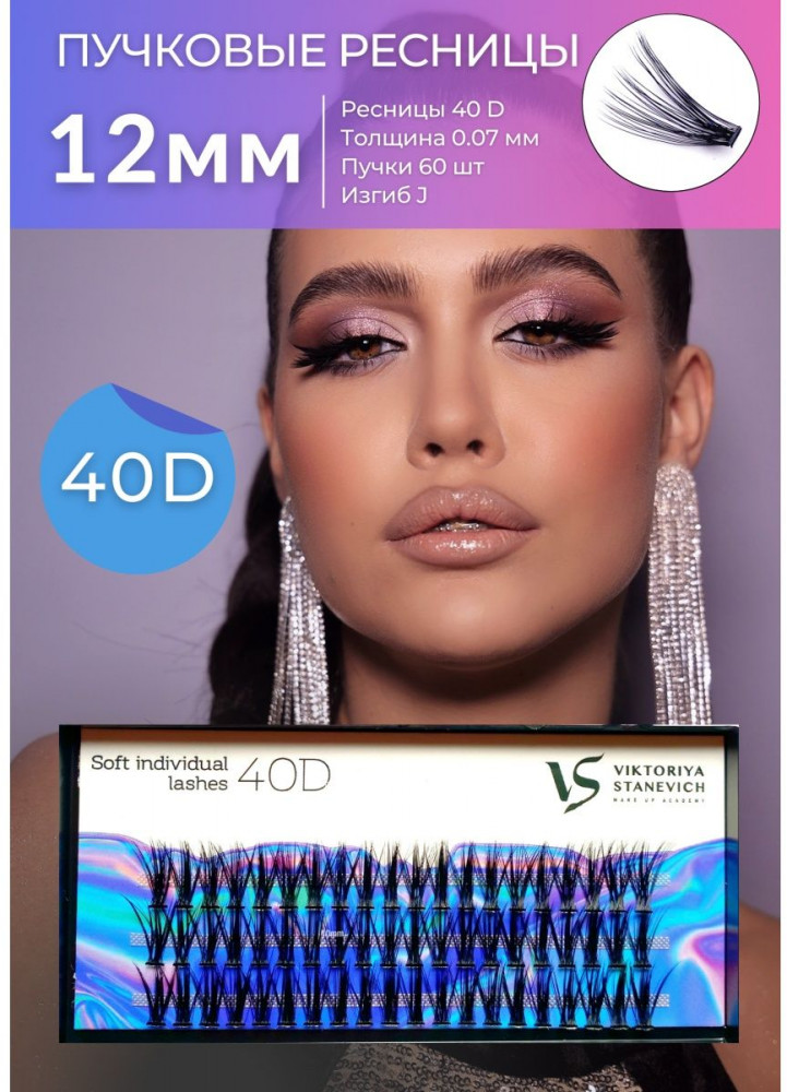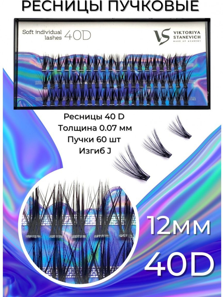 Viktoriya Stanevich Пучки для наращивания ресниц, изгиб J 40D, 12 мм