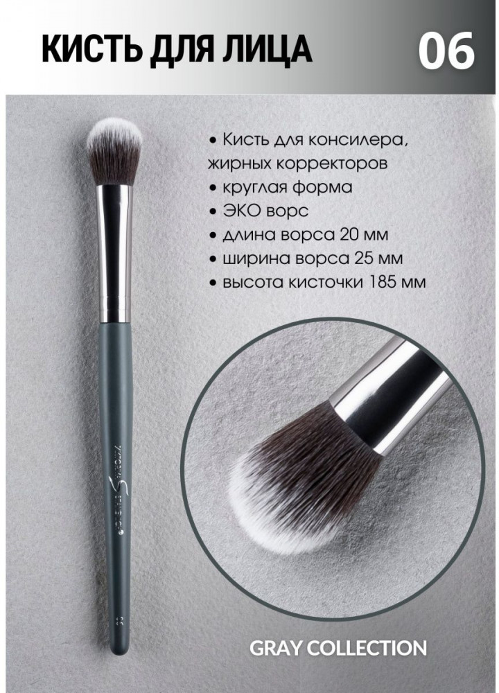 Viktoriya Stanevich Кисть для макияжа №06В данный момент этот товар отсутствует в продаже. Возможно, у нас найдется аналогичный или похожий товар здесь. Серия: Gray Collection Кисть для нанесения тонального крема, базы и мягкой растушевки корректирующих средств. Круглая, плотная, имеет вытянутый срез. Эковорс не вызывает аллергических реакций, легкий в очищении, долговечный. Очень легкая удобная форма, инструмент приятно держать в руках. |