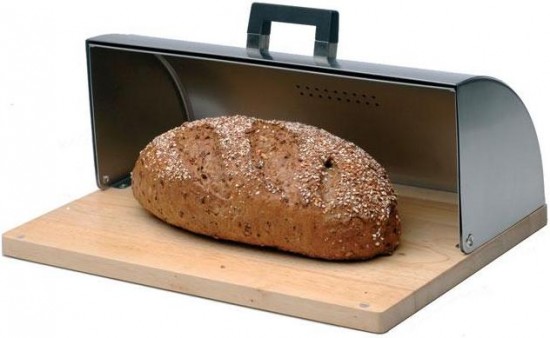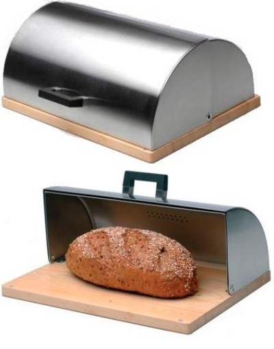 Очень красивая и удобная хлебница! Крошки легко убирать! Хлеб на ней не режу, будут полосы, не хочу портить красоту. Но надо понимать, что ее хромовая крышка не терпит жирных отпечатков и прочих брызг, будете натирать!