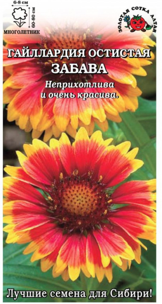 Золотая сотка Алтая Гайлардия «Забава остистая»В данный момент этот товар отсутствует в продаже. Возможно, у нас найдется аналогичный или похожий товар здесь. Гайллардия остистая - неприхотливое и засухоустойчивое растение для ландшафтного озеленения и срезки в букеты. Растение высотой до 80 см, конусовидное, с сильной облиственностью. Куст мощный, густооблиственный, образует до 18-20 цветоносов. Соцветия-корзинки очень красочные: желтая с багряным краем серединка в обрамлении оранжево-красных лепестков с желтыми кончиками диаметром 6-8 см. Листья ланцетные, зеленые, очередные, длиной 11 см, опушенные. Число боковых побегов 15-18 шт. Центральный цветонос длиной 25-30 см, прочность слабая. Аромат отсутствует. Цветение по сроку среднее, продолжительное, 100-120 дней. По данным заявителя, сорт светолюбив, засухоустойчив. Рекомендуется для посадки группами в цветнике, для срезки в букеты. Цветет на второй год с июня по сентябрь. |